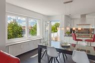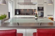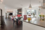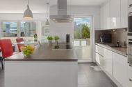 Auch die offene Küche mit Kochinsel wurde in den Wohnbereich angeschlossen. Modern und durchdacht gestaltet, bietet Ihnen die Einbauküche alle Annehmlichkeiten für eine sorgenfreie Selbstversorgung oder zur kulinarischen Entfaltung.