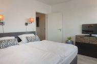 Ebenso komfortabel geht es in den zwei Schlafzimmern der Wohnung weiter. Hier warten einladende Doppelboxspringbetten (180x200 + 180x200), große Kleiderschränke und jeweils zusätzlich ein TV. Für Verdunklung sorgen elektrische Aussenjalousien. Bettwäsche und Handtuchsets sind inklusive.