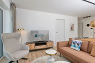 Neubau Mai 2023! Sehr schöne, moderne 3-Raum-Wohnung bis 4 Pers. voll ausgestattet auf ca. 73 m² in der 2.Etage gelegen, 2 Schlafzimmer mit komfortablen Doppelbetten (Bettwäsche inkl.) und Außenjalousien an allen Fenstern, ebenerdige Dusche/WC, Wohnzimmer mit großer Küchenzeile (Backofen, Geschirrspüler, Mikrowelle), 3x Kabel-TV, Radio, kostenfreies W-LAN-Internet, kleiner Balkon (ost) mit Teilseesicht, Personenaufzug, reservierter Pkw-Stellplatz in der Tiefgarage inkl., es sind keine Haustiere erlaubt und natürlich Nichtraucher. Durchfahrtshöhe Tiefgarage: 2,05m.