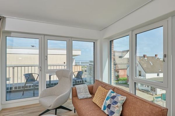 Neubau Mai 2023! Sehr schöne, moderne 3-Raum-Wohnung bis 4 Pers. voll ausgestattet auf ca. 80 m² in der 3.Etage gelegen, 2 Schlafzimmer (1x Doppelbett, 1x 2 Einzelbetten) und Außenjalousien an allen Fenstern, ebenerdige Dusche/WC, Wohnzimmer mit großer Küchenzeile (Backofen, Geschirrspüler, Mikrowelle) u. Teilseesicht, 2x Kabel-TV, Radio, kostenfreies W-LAN-Internet, kleiner Balkon (nord) mit Teilseesicht, Personenaufzug, reservierter Pkw-Stellplatz in der Tiefgarage inkl., es sind keine Haustiere erlaubt und natürlich Nichtraucher. Durchfahrtshöhe Tiefgarage: 2,05m.