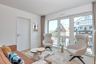 Neubau Mai 2023! Sehr schöne, moderne 3-Raum-Wohnung bis 4 Pers. voll ausgestattet auf ca. 73 m² in der 3.Etage gelegen, 2 Schlafzimmer mit komfortablen Doppelbetten (Bettwäsche inkl.) und Außenjalousien an allen Fenstern, ebenerdige Dusche/WC, Wohnzimmer mit großer Küchenzeile (Backofen, Geschirrspüler, Mikrowelle), 3x Kabel-TV, Radio, kostenfreies W-LAN-Internet, Balkon (ost) mit Teilseesicht, Personenaufzug, reservierter Pkw-Stellplatz in der Tiefgarage inkl., es sind keine Haustiere erlaubt und natürlich Nichtraucher. Durchfahrtshöhe Tiefgarage: 2,05m.