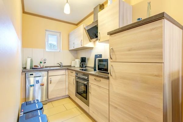 Die WG 02 ist eine Ferienwohnung im Erdgeschoss des Hauses, mit 40 qm für bis zu 2 Personen, ggf. zzgl. 1 Kleinkind bis 2 Jahre. Die Wohnung ist mit einem Schlafzimmer mit Doppelbett und mit Schlafsofa im Wohnzimmer ausgestattet. Die Küche ist mit Einbauküche und allen notwendigen elektrischen Geräten ausgestattet. Die Wohnung ist mit einer Badewanne ausgestattet.