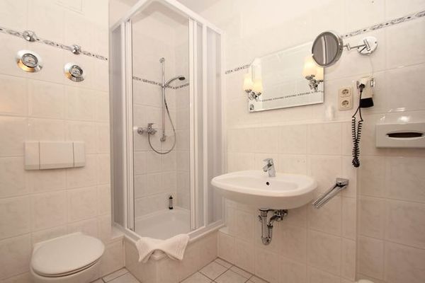 Bad mit Dusche, WC und Föhn