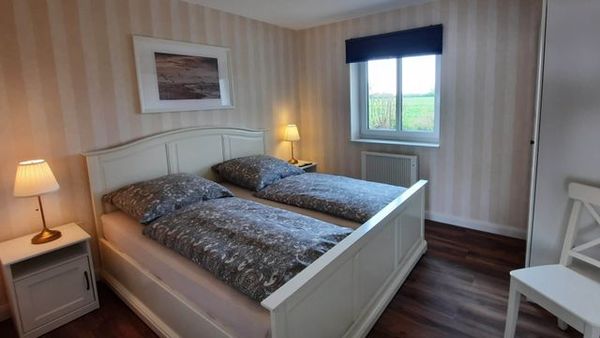 - Schlafzimmer mit Doppelbett und TV; Bettwäsche zu buchbar