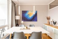 Genießen Sie Ihren Aufenthalt in dieser modernen Wohnung im skandinavischen Stil. Das lichtdurchflutete Apartment verfügt über einen großen Balkon und bietet Platz für bis zu 3 Personen. Diese komplett renovierte und modern eingerichtete Ferienwohnung ist durch die bodentiefe Fensterfront in südwestlicher Richtung komplett lichtdurchflutet und lädt mit dem hellen Echtholz-Fußboden zum Wohlfühlen ein. Im Flurbereich befinden sich eine Abstellkammer und ein Kleiderschrank. Im Wohnbereich bietet ein großer Holztisch mit vier bequemen Stühlen ausreichend Platz perfekt für ein Essen in gemeinsamer Runde. Direkt gegenüber befindet sich die angrenzende Einbauküche. Die offene Küche mit einem Tresen und zwei Barhockern und der Arbeitsfläche in Holzoptik ist mit hochwertigen Elektrogeräten ausgestattet. Ceranherd, Backofen und Geschirrspüler, Kühlschrank mit separatem Gefrierfach, Wasserkocher, Toaster und eine Kaffeemaschine sowie einer Nespresso-Maschine bietet eine Ausstattung fast wie zu Hause. Im großzügig geschnittenen Wohnbereich finden Sie eine gemütliche Couch. Mit nur wenigen Handgriffen lässt sie sich in eine bequeme Schlafcouch (160 x 200) umwandeln und bietet weiteren Platz für bis zu 2 Personen. Von der Couch aus lassen gemütliche Fernsehabende keine Wünsche offen: Ein LCD-Fernseher mit USB- und Kabelanschluss bietet die Möglichkeit Ihr Heimkino auch im Urlaub zur Verfügung zu haben. Die Ferienwohnung ist außerdem mit kostenlosem WLAN ausgestattet. Das gepflegte Badezimmer besticht mit einer großen Dusche (Regenkopf- und Handbrause). Das Schlafzimmer verfügt über ein Doppelbett (200x160) und ist durch zwei Schiebetüren vom restlichen Wohnbereich getrennt. Der 16qm große Balkon, welcher sich über die gesamte Breite des Apartments verläuft, ist mit Tisch und Stühlen sowie einer Markise ausgestattet. Durch die südwestliche Lage können Sie auch abends die Sonne in vollen Zügen genießen. Besonderheiten In der Ferienwohnung steht Ihnen kostenlos WLAN zur Verfügung. Diese Ferienwohnung ist eine Nichtraucherwohnung. Geraucht werden kann gerne auf dem Balkon vielen Dank für Ihr Verständnis. In diesem Apartment sind Haustiere nicht gestattet. Ihren PKW können Sie auf dem hauseigenen PKW-Stellplatz parken. Es besteht zusätzlich die Möglichkeit Fahrräder in einem abgeschlossenen Außenbereich unterzustellen.