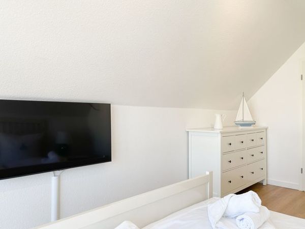 Die Ferienwohnung Ankerplatz[nbsp] liegt[nbsp] in der 2. Etage im Haus Sonnenpark und erstreckt sich über 2 Wohnebenen bis ins Dachgeschoss. Ein herrlicher Sonnenbalkon, ausgestattet mit Gartenmöbeln und einer elektrischen Markise, verläuft über den[nbsp] gesamten Wohnbereich und bietet einen tollen Rückzugsort bis zum letzten Sonnenstrahl. Die frisch renovierte Wohnung verfügt über ein gelungenes Raumkonzept mit neuer Küche, neuem Duschbad und Gäste WC. Die Ausstattung ist hochwertig und bietet 4 Personen ausreichend Raum zum Wohlfühlen in Strandnähe. Es erwartet Sie ein heller, großzügiger Wohnraum mit bodentiefen Fensterflächen, geschmackvoll gestaltet und mit einem komfortablen Sofa und zwei Sesseln eingerichtet, TV, Hifi-Anlage und ein Essbereich mit ausreichend Platz für 4 Personen. WLAN steht selbstverständlich zur kostenlosen Nutzung zur Verfügung. Die integrierte Küche ist bestens ausgestattet, unter anderem mit Spülmaschine, Backofen, Nespressomaschine und vielem mehr. Im Eingangsbereich befindet sich eine Garderobe und ein separates Gäste WC. Auf der oberen Ebene, die über eine Treppe vom Wohnbereich zu erreichen ist, bietet die Wohnung zwei separate Schlafzimmer mit Doppelbetten (180x200), Kleiderschränken und Verdunkelungsvorhängen sowie ein äußerst großzügiges, modernes Duschbad mit einem Doppelwaschtisch und viel Tageslicht. Schlafzimmer 1 verfügt zusätzlich über einen TV und Schlafzimmer 2 über einen Schreibtisch und das Bett besteht aus 2 Einzelbetten, die beliebig zusammengeschoben oder getrennt genutzt werden können.
