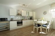 Bettwäsche, Handtücher, Reise-/Kinderbett, Terrasse, Nichtraucher, Dusche, Spülmaschine, Haartrockner, Kühlschrank, Backofen, Heizung, WLAN, Hochstuhl, Gefriermöglichkeit, TV - Flachbild, getrennt stehende Betten, Küche (offen), Tiere nicht erlaubt, Doppelbett, Bad/WC, Kaffeemaschine, Kissen, Toaster, Wasserkocher