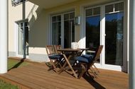 * Terrasse mit Gartenmöbeln.