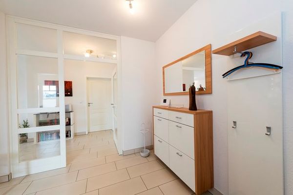 * Großer Eingangsbereich mit Garderobe und Schuhschrank.