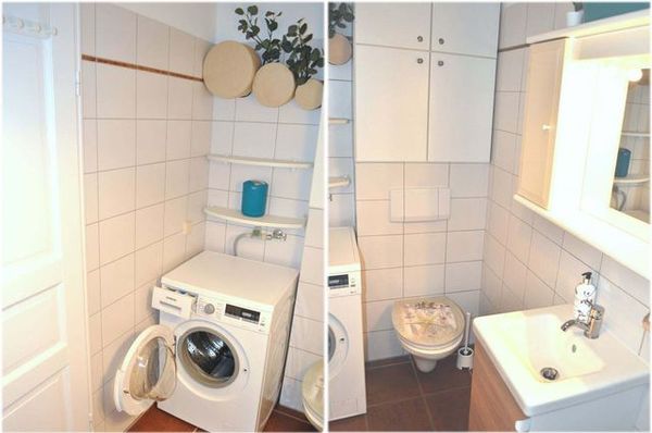 Bad 1: Bügeleisen, Dusche, Duschkabine, Spiegelschrank, Waschbecken, Waschmaschine, WC