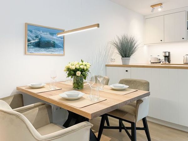 Dusche/WC, TV, Balkon, Tiere willkommen, Nichtraucher, Waschmaschine, Spülmaschine, Trockner, Haartrockner, Kühlschrank, Backofen, Heizung, WLAN, Gefriermöglichkeit, Kaffeemaschine, Dusche ebenerdig, Toaster, Wasserkocher, Pad-/Kapsel-Kaffeemaschine, Holz- oder Parkettböden, Verdunkelungsmöglichkeit