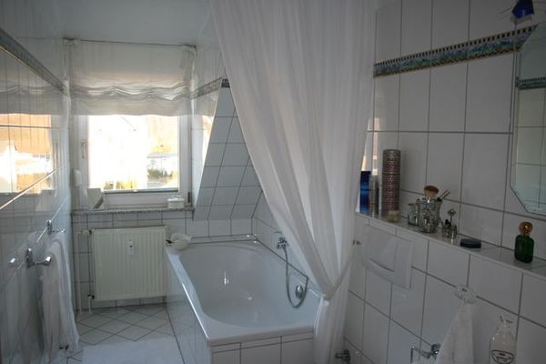 Im großzügigen Wohnzimmer befinden sich neben einer gemütlichen Sitzecke mit zwei Sofas und einem Sessel auch ein großer Esstisch und die gut eingerichtete Einbauküche. Sie ist mit Kühl-/Gefrierkombination, Geschirrspüler, Cerankochfeld, Backofen, Kaffeemaschine, Toaster und Wasserkocher ausgestattet. Flachbildfernseher und Stereoanlage sind zu Ihrer Kurzweil selbstverständlich ebenfalls vorhanden. Der Balkon mit Markise liegt in südöstlicher Richtung und lädt zum Sonnenbaden und Frühstücken ein. Das geräumige Bad ist maritim eingerichtet und mit einer großen, bequemen Badewanne ausgestattet, in der man über die badeigenen Lautsprecherboxen bei Musik entspannen, aber auch duschen kann. Das Schlafzimmer verfügt über ein großes Doppel- und großzügiges Einzelbett sowie einen weiteren Flachbildfernseher. Auch Rollläden zur Verdunkelung sind vorhanden.Das Haus verfügt über kostenloses, schnelles Internet und einen Garten mit Wäschespinne und Grillmöglichkeit. Ebenso stehen eine münzbetriebene Waschmaschine und ein Trockner für die Gäste zur Verfügung. Auch ein kostenloser Pkw-Stellplatz und Fahrradstellplätze sind vorhanden. Für die kalte Jahreszeit erlaubt die münzbetriebene Gemeinschaftssauna des Hauses mit Dusche und ansprechendem Ruhebereich zusätzliche Möglichkeiten, den Urlaub richtig zu genießen.