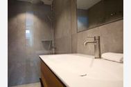Das Tageslichtbad im Obergeschoss bietet eine Echtglasduschkabine mit Duschpanel und geräumigen Waschtisch mit ausreichender Staufläche. Die Toilette ist mit einem kleinem Waschtisch, Handtuchtrockner, und einer Waschmaschine ausgestattet.