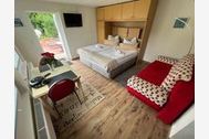 - Wohn-/Schlafzimmer mit TV und Couch, Essecke