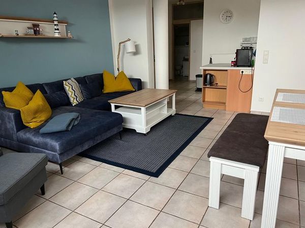 Die 2-Zimmer-Ferienwohnung mit ca. 63 m² Wohnfläche ist aufgeteilt in: Schlafzimmer mit Doppelbett (180cm x 200cm/getrennte Matratzen) und Flachbild-TV; komb. Wohn-/Schlafraum mit Essplatz und Schlafcouch (140cm x 200cm), Kinderbett und Hochstuhl vorhanden; offene, voll ausgestattete Einbauküche; Bad mit Wanne/Dusche/WC; möblierte Terrasse; kostenfreies WLAN; PKW-Stellplatz; abschließbarer Fahrradraum; Nichtraucher!; Haustier auf Anfrage. Ohne Bett- und Handtuchwäsche.