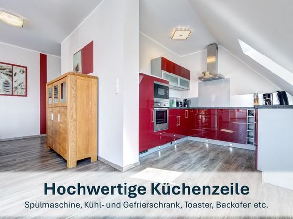 Das Nichtraucherhaus bietet im Dachgeschoss einen hellen Wohnbereich mit gemütlicher Couch, eine offene, gut ausgestattete Küche, zwei Schlafzimmer und ein modernes Badezimmer. Ideal für Paare, Familien oder Freunde, die gemeinsam entspannen möchten.