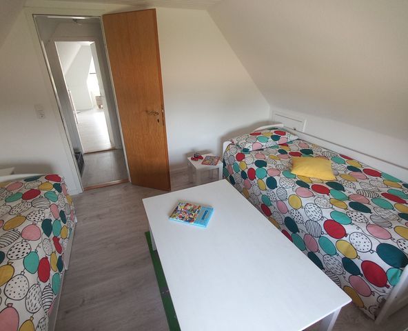 - Schlafzimmer mit 2 Einzelbetten (90x200), Spieltisch und Spielteppich; Bettwäsche zu buchbar