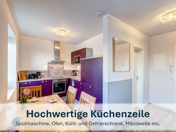 Die gemütliche Maisonettewohnung Nr.9 befindet sich im rechten Flügel des Hauses und erstreckt sich über zwei Ebenen. Im unteren Bereich erwartet Sie eine offene, voll ausgestattete Küche mit Spülmaschine, Kühlschrank mit Gefrierfach, Mikrowelle, Cerankochfeld, Backofen, Kaffeemaschine, Wasserkocher und Toaster ideal für gemeinsame Kochabende. Der angrenzende Wohnbereich mit Schlafcouch bietet zusätzlichen Platz zum Entspannen. Ebenfalls auf dieser Etage: das moderne Badezimmer mit Dusche. Über eine Treppe gelangen Sie in das Schlafzimmer im oberen Bereich, das mit einem gemütlichen Doppelbett ausgestattet ist. Vom Wohnbereich aus erreichen Sie den möblierten Balkon mit Blick in den ruhigen Innenhof. WLAN ist inklusive. Ein abschließbarer Schuppen sowie ein zugewiesener Parkplatz stehen zur Verfügung. Ein Gemeinschaftsraum im Erdgeschoss lädt zum Verweilen ein. Wäschepakete, ein Reisebett mit passender Wäsche sowie ein Hochstuhl können gegen Aufpreis dazugebucht werden bitte bei der Buchung angeben. Die Kaution ist mit der Restzahlung zu überweisen und wird nach ordnungsgemäßer Rückgabe erstattet.