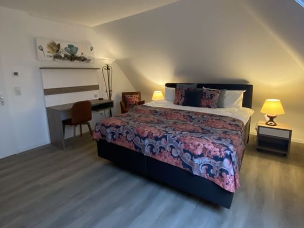 Alle Doppelzimmer sind sehr geschmackvoll und mit sehr hochwertigen Betten, 1,80 x 2,00 m, ausgestattet und verfügen über ein Duschbad. Erleben Sie Gastfreundschaft in einem neuen Licht.