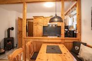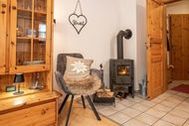 Der Wohnbereich ist mit einer neuen Doppelbettcouch, einem Sessel, Flachbildfernseher, Stereoanlage mit CD-Player und Radio ausgestattet. Spiele und Bücher sorgen für entspannte Stunden. Ein Kaminofen spendet in der kühleren Jahreszeit angenehme Wärme. WLAN ist in der gesamten Unterkunft verfügbar.