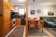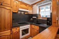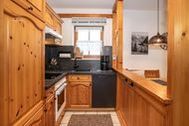 Die offene Küche wurde neu renoviert und umfasst einen Elektroherd mit Backofen, Kühlschrank mit Gefrierfach, Kaffeemaschine, Toaster, elektrische Brotschneidemaschine sowie reichlich Geschirr und Besteck. Eine neue Geschirrspülmaschine ergänzt die Ausstattung.