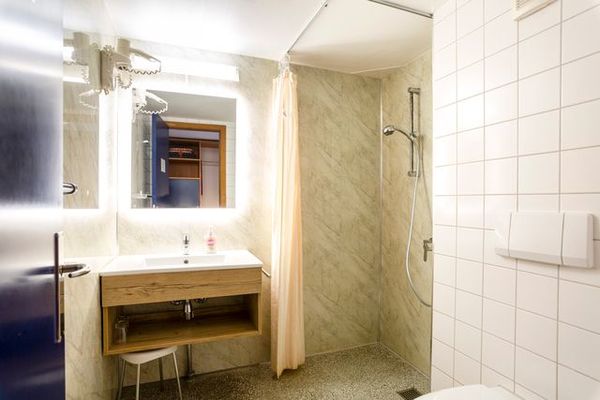Das gemütliche Zimmer befindet sich im 1. Obergeschoss des Stammhauses und besitzt einen umliegenden Balkon. Neben einem Doppelbett (180x200) befinden sich ein TV, eine Sitzmöglichkeit sowie ein Schreibtisch und ein Schlafsofa (150x200) in dem 20m² großen Zimmer. Im Flur gibt es genügend Platz für die Garderobe und einen Safe für Deine Wertsachen. Das innenliegende Bad ist mit einer ebenerdigen Dusche, WC, Waschbecken und Haartrockner ausgestattet. Ein Kinderbett kann kostenfrei bereitgestellt werden.