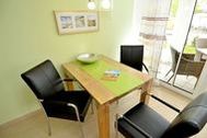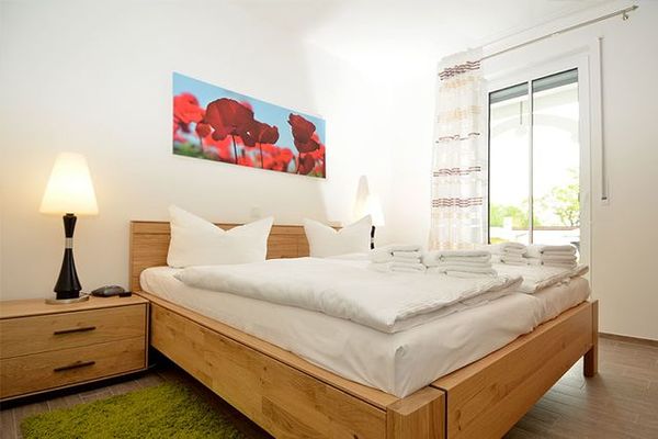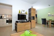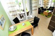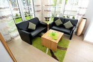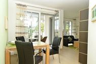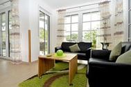 Appartement 2: Dieses ca. 57 m² große und geschmackvoll eingerichtete 2-Raum-Appartement befindet sich im Erdgeschoss und hat eine große Terrasse zur Südseite, auf der Sie vom Mittag bis zum Abend die Sonne genießen können. Ein Strandkorb und Terrassensitzmöbel stehen zur Verfügung. Vom Eingangsbereich gelangen Sie durch die großzügige Diele in den modern eingerichteten Wohn- und Essbereich, der mit einem LED-Fernseher, einer Heimkinoanlage mit DVD-Player, Blu-Ray-Player, CD und Radio ausgestattet ist. W-LAN ist kostenfrei verfügbar. Die optisch vom Wohnraum getrennte Küche ist mit einem großen Kühlschrank, einem Backofen, einem Ceranfeld mit 4 Kochfeldern, einer SENSEO-Kaffeemaschine, einer Mikrowelle sowie einer Spülmaschine und diversem Kleininventar, das die Küchenausstattung komplettiert, eingerichtet. Im Schlafzimmer finden Sie ein großes komfortables Doppelbett (1,80 x 2,00 m) für einen erholsamen Schlaf sowie einen geräumigen Kleiderschrank für Ihre Urlaubsgarderobe, einen Safe für Ihre Wertsachen und einen weiteren Fernseher vor. Das Appartement verfügt natürlich auch über ein großzügiges Badezimmer mit Dusche/WC. Bügelutensilien stehen zur Verfügung. Für Ihren PKW befindet sich in der hauseigenen Tiefgarage ein Stellplatz. Die hochwertig geflieste Nichtraucherwohnung ist mit einer Fußbodenheizung ausgestattet. Sie dürfen sich auf eine helle und lichtdurchflutete Wohnung mit edlen Echtholzmöbeln freuen. Die Wohnung ist ideal für 1-2 Personen geeignet. 1 kleines Haustier ist nach Absprache und gegen Gebühr ebenfalls herzlich willkommen.