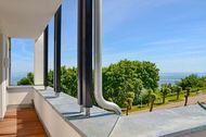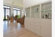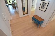 Auch im Wohn-/Essbereich sind wie in der gesamten Wohnung helle Eichendielen verlegt, die durch eine Fußbodenheizung noch gemütlicher wirken. Aufwändige Tischlerarbeiten in der ganzen Suite und Deckenhöhen von 2,88m unterstreichen den Villencharakter des Objektes. Eine hochkarätig ausgestattete Einbauküche macht Lust darauf, gerade im Urlaub zu "entschleunigen" und in einem tollen Ambiente etwas Schönes zu kochen. Wann kann man dies schon einmal mit direktem Meerblick?