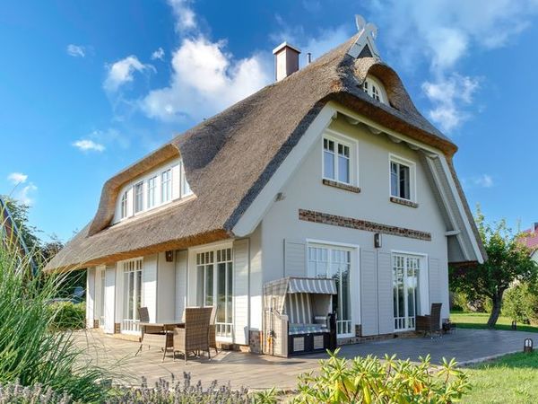 Dieses reetgedeckte Ferienhaus direkt am Bodden ist ca. 140 m² groß. Die exklusive Wohnfläche verteilt sich auf drei Ebenen und ist in zwei Schlafzimmer, eine Schlafgelegenheit im ausgebauten Spitzboden, zwei Bäder und einen großzügigen Wohn-/Essbereich aufgegliedert. Durch seine einzigartige Lage bietet das Haus einen traumhaften Wasserblick von jedem der hochwertig eingerichteten Räumen sowie von jedem Punkt des Grundstückes und der Terrasse aus. Der großzügige Wohnbereich mit Esstisch für sechs Personen und einer angrenzenden, hochwertigen Küche befindet sich im Erdgeschoss. Das Wohnzimmer ist mit einer gemütlichen Sitzecke und einem Flachbild-TV ausgestattet. In der kühleren Jahreszeit verbreitet ein prasselndes Kaminfeuer die besondere Gemütlichkeit. Zwei gemütliche Sitzgelegenheiten, platziert vor einer der großen Glasfronten laden zum Verweilen und Entspannen ein und bieten einen ungehinderten Blick auf die Weite der Hagenschen Wieck und die Zickerschen Berge. Im angrenzenden Küchenbereich befindet sich eine komplett ausgestattete Küchenzeile mit einem 4-Zonen-Induktionskochfeld, Backofen, Mikrowelle, Geschirrspüler, Kühlschrank mit Gefrierfach, Kaffeemaschine, Toaster, Wasserkocher und diversem Kleininventar. Ein Küchentresen mit Hockern komplettiert die hochwertige Einrichtung. Eines der modernen Bäder ist ebenfalls im Erdgeschoss zu finden. Es verfügt über einen Waschtisch, eine Dusche und ein WC. Eine Waschmaschine ist ebenfalls vorhanden. Über eine Treppe gelangen Sie in das Obergeschoss des Hauses. Hier befinden sich zwei geräumige Schlafzimmer mit jeweils einem großen, bequemen Doppelbett (1,80 m x 2,00 m) und einem eigenen Flachbild-TV. Je ein Kleiderschrank bietet ausreichend Platz für Ihre Urlaubsgarderobe. In einem der Schlafzimmer gibt es zusätzlich einen separaten Ankleidebereich, in dem eine Recamiere zum Platznehmen einlädt. Das Highlight auf dieser Etage ist das zweite Bad dieses Hauses. Von der Badewanne aus bietet sich ein atemberaubender Blick auf die Hagensche Wieck. Hier ist Entspannung garantiert unabhängig vom Wechsel der Jahreszeiten. Eine große Walk-In-Dusche, ein Waschtisch, ein WC, ein Bidet sowie ein weiterer Flachbild-TV machen aus diesem Raum eine wahre Wellness-Oase. Eine Sauna, ebenfalls mit herrlichem Ausblick rundet den exklusiven Eindruck ab. Die dritte Schlafgelegenheit mit einem einzeln stehenden Kajütenbett (ca. 1,60 x 2 m) befindet sich im ausgebauten Spitzboden des Hauses. Die großzügige, umlaufende Terrasse mit einem Strandkorb vervollständigt den hervorragenden Gesamteindruck. Die Balkon- bzw. Terrassenmöbel stehen saisonal - in der Regel von Mai bis Ende September - zur Verfügung. Zwei PKW-Stellplätze sowie WLAN stehen Ihnen kostenfrei zur Verfügung. Fahrräder, Strandutensilien, Kinderspielzeug usw. können ein einem verschließbaren Schuppen untergestellt werden. Dieses exklusive Ferienhaus ist für 1 6 Personen buchbar. Ihr kleiner, wohlerzogener Vierbeiner ist auf Anfrage und gegen Gebühr ebenfalls gestattet. Kaminholz ist bitte selbst mitzubringen. *Premiumpaket - folgende Leistungen sind im Übernachtungspreis inklusive:
