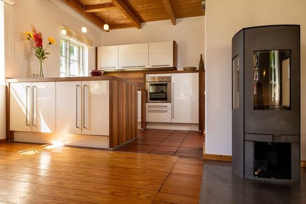 Das romantische Reetdachhaus erwartet Sie in absolut ruhiger und idyllischer Lage im malerischen kleinen Dörfchen Preetz, einem Ortsteil von Lancken-Granitz, mit nur ca. 10 weiteren Häusern. Die Gegend ist für ruhesuchende Feriengäste genauso ideal wie für aktive Naturfreunde. Schöne Rad- und Wanderwege erschließen diesen Teil der Insel mit der bezaubernden Landschaft des Mönchgutes. Das Mönchgut gehört zu den Highlights eines jeden Rügen-Urlaubs und ist Teil des Biosphärenreservats Südost-Rügen. Im Erdgeschoss mit seiner urgemütlichen offenen Holzbalkendecke dominiert das großzügige Wohn- und Esszimmer. Es ist ausgestattet mit bequemen Sitzmöbeln inklusive einem Relaxsessel, einem großformatigen Smart-TV, einem DAB-Radio mit Bluetooth und einer kleinen Auswahl von Urlaubslektüre und Spielen. Natürlich gibt es auch kostenfreies W-LAN. Der Kaminofen sorgt für Romantik und gemütliche Wärme. Feuerholz dafür ist ausreichend vorhanden und inklusive. Die offene Küche lässt das Herz aller Hobbyköche höher schlagen. Sie sieht nicht nur chic aus, sondern ist mit Ceranherd, Mikrowelle, Backofen, Kühlschrank mit Gefrierfach, Geschirrspüler, Kaffeemaschine, Wasserkocher und Toaster sowie allem nötigen Besteck und Geschirr allerbestens ausgestattet. Speisen können Sie wahlweise am großen Esstisch im Wohnzimmer oder bei passendem Wetter auch auf der überdachten Frühstücksterrasse, wo Sie die Morgensonne zu Gast haben. Im Erdgeschoss gibt es außerdem einen Flur mit Garderobe, eine Konsole mit großem Spiegel, ein Duschbad/WC, ein ausziehbares Schlafsofa (1,40 x 2,00m) und einen Hauswirtschaftsraum mit kostenfrei nutzbarer Waschmaschine nebst Bügel- und Reinigungsgeräten. Ein paar Treppenstufen höher finden Sie im Dachgeschoss Ihre beiden Schlafzimmer mit jeweils einem komfortablen Doppelbett. Hier werden Sie himmlisch nächtigen. Durch die bei Bedarf geöffneten Fenster versehen mit Insektenschutzgittern kommt im Sommer eine kühle Brise vom nicht weit entfernten Meer. Beide Schlafzimmer verfügen auch über einen zusätzlichen Fernseher. Ein weiteres Duschbad/WC rundet diese Etage ab. Auf dem gepflegten Gartengrundstück gibt es ein kostenfrei nutzbares Saunahäuschen und eine weitere, etwas erhöht liegende Terrasse. Von hier aus genießen Sie einen wunderbaren Blick in die umgebende Landschaft und bis hinüber zum Jagdschloss Granitz. Gut zu wissen: