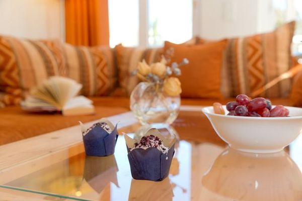 Technisch lässt das Wohnzimmer mit 40 Zoll-LED-TV und WLAN-Anschluss keine Wünsche offen. Die im Wohnzimmer integrierte hochwertige Küchenzeile ist mit allen Extras (Backofen, Kühlschrank mit Gefrierfach, Geschirrspüler, Mikrowelle, Wasserkocher, Toaster, Kaffeemaschine) ausgestattet, so dass einem Perfekten Dinner nichts im Wege steht.