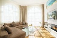 Das exklusive 3-Zimmer-Appartement verfügt über ein imposantes Wohnzimmer mit XXL-Ecksofa, Flat-TV, schillerndem Kronleuchter und modernster Küchenzeile, die über alle Annehmlichkeiten wie Kaffeevollautomat, Backofen, Kühlschrank mit Gefrierfach, Geschirrspüler, Mikrowelle, Wasserkocher, Toaster verfügt, was das Kochherz begehrt. Für die unterhaltsamen Stunden ist dank DVD-Player gesorgt. Die Wohnung selbst besticht durch Ihre stilvolle Einrichtung und wird mit einem Gaskamin (per Fernbedienung) im Wohnzimmer abgerundet. Dieser lädt zu gemütlichen Stunden zu jeder Jahreszeit ein. Die vom Wohnbereich abgehende Terrasse zur sonnigen Südwestseite ist ein ideales Plätzchen für entspannte Stunden oder das Dinner mit der Familie. Beide Schlafzimmer sind mit einem komfortablen Boxspringbett (160 x 200cm / 180 x 200cm / zwei getrennte Matratzen) ausgestattet. Eines der Schlafzimmer verfügt über einen Flat-TV. Damit Sie Ihre wohlverdiente Urlaubszeit bereits am Anreisetag in vollen Zügen genießen können, haben wir das Bett für Sie und das für Ihre lieben Mitreisenden bereits bezogen und ein Duschtuch sowie ein kleines Handtuch bereitgelegt. Das Badezimmer überzeugt mit einem Doppelwaschtisch, großflächigem Spiegel, einer bodengleichen Echtglasdusche, WC und einem Haartrockner. Ein Parkplatz direkt am Haus, Nutzung des Saunabereiches, ein gemeinschaftlicher Fahrradabstellraum sowie ein WLAN-Zugang stehen kostenfrei während Ihrer Urlaubszeit mit zur Verfügung und runden den Urlaubskomfort dieses Appartements ab. Waschmaschine und Trockner im Haus sind gegen eine Gebühr nutzbar.