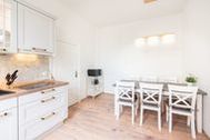 Das neu möblierte 2-Raum-Appartement mit dem Charme der alten Bäderarchitektur mitten im Herzen von Ahlbeck befindet sich im Erdgeschoss. Die 81 Quadratmeter Wohnfläche bieten ausreichend Platz für einen erholsamen Urlaub mit bis zu vier Personen. Der helle Wohnbereich ist mit Flat-TV und bequemen Polstermöbeln ausgestattet. Verbringen Sie hier Ihre familiären und geselligen Stunden. Das Sofa kann auch als Schlafstätte für zwei weitere Personen umfunktioniert werden. Der lichtdurchflutete, angrenzende Wintergarten lädt zum gemütlichen Verweilen bei einer schönen Tasse Tee ein. Die hochwertig ausgestattete Küche (Herd mit Backofen, Kühlschrank mit Tiefkühlfach, Geschirrspülmaschine, Mikrowelle, Kaffeemaschine, Toaster und Wasserkocher) im Landhausstil lässt keine Wünsche offen. Bereiten Sie gemeinsam Ihre Lieblingsspeisen zu und genießen Sie diese an dem großzügigen Esstisch.