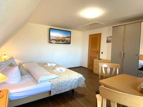 Das 1-Raum-Appartement befindet sich im Dachgeschoss des Süderhauses und ist mit seiner Größe von 22 Quadratmetern das perfekte Urlaubsdomizil für Singles und Paare.