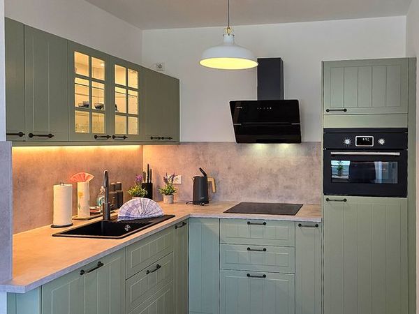 Der großzügige Wohnbereich verfügt über ein gemütliches (ausziehbares) Schlafsofa, einem LG HD Smart TV und einem großzügigen Essbereich. Kostenfreies WLAN steht Ihnen natürlich auch zur Verfügung. Für gemütliche Abende liegt eine Auswahl an Gesellschaftsspielen und Büchern bereit. Die Küche ist komfortabel mit einem Mikrowellenbackofen, Induktionsherd und einer Geschirrspülmaschine ausgestattet. Das Badezimmer ist mit einer bodengleichen 1,40m x 1,40m großen Dusche mit schwenkbaren Faltwänden individuell nutzbar. Die Wohnung ist hell und offen eingerichtet und verfügt über eine Terrasse mit Gartenmöbeln. Das Feriendomizil ist rollstuhlgeeignet und befindet sich im Erdgeschoss. Die komplette Wohnung ist mit einer Fußbodenheizung ausgestattet. Das Schlafzimmer verfügt über ein großes Doppelbett, Nachtschränkchen und je einer Leselampe, sowie ein großer Kleiderschrank.