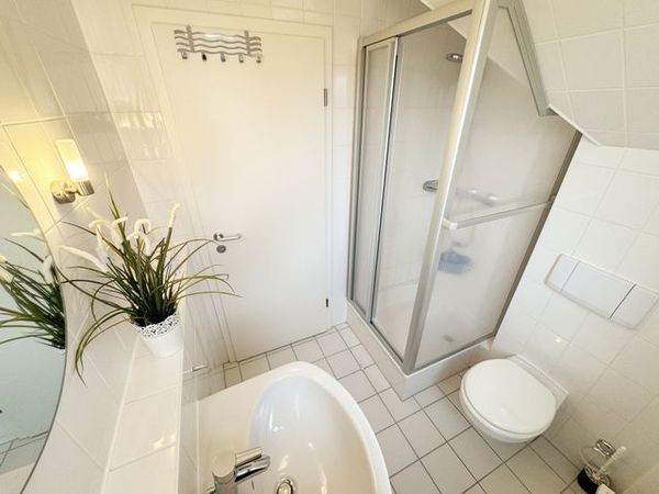 Die 70 qm Nichtraucher-Maisonette-Wohnung ist modern und hell im skandinavischen Stil eingerichtet und bietet Platz für max. 4 Erwachsene + 1 Kleinkind bis 3 Jahre im Kinderreisebett. Fotografien der Insel lassen Sie beim Eintreten auf der Insel ankommen. Über einen kleinen Flur mit Garderobe gelangen Sie direkt in den großen Wohn- und Essbereich mit Einbauküche. Die bodentiefen Fenster mit Absturzsicherung und Insektenschutzgittern sorgen für viel Tageslicht. Der Wohnbereich ist gemütlich gestaltet und lädt zum Entspannen ein. Er verfügt über eine bequeme Eckcouch mit variablem Fußteil, ein Couchtisch, einen Sessel und eine Stehlampe. Hier können Sie es sich gemütlich machen, einen Film auf dem 32-Zoll-Smart-TV genießen oder der Musik aus dem Bluetooth-Radio lauschen. Ein WLAN-Anschluss rundet den technischen Bereich ab. In dem Sideboard finden Sie ausreichend Stauraum für Ihre persönlichen Gegenstände. Zusätzlich befindet sich dort eine Spielesammlung für die ganze Familie sowie eine kleine Auswahl an Büchern. Die Einbauküche beinhaltet alles, was Sie zur Zubereitung Ihrer Mahlzeiten benötigen. Wie ein Induktionsherd, ein Kühlschrank mit Gefrierfach, eine Mikrowelle und ein Geschirrspüler. Darüber hinaus steht Ihnen sowohl eine Filter-Kaffeemaschine als auch eine Nespresso-Kapselmaschine, ein Wasserkocher, ein Toaster, ein Messerblock sowie viele Kochutensilien zur Verfügung. Ein Esstisch rundet den Küchenbereich ab. Von hier aus gelangen Sie über eine Treppe in den oberen Schlafbereich. Hier befinden sich zwei Einzelbetten (je 0,90m x 2,00m), die auch zu einem Doppelbett verschoben werden können, verstellbare Lattenroste, zwei Nachttischablagen mit Leseleuchten, ein Kleiderschrank sowie ein Verdunklungsrollo. Der Raum bietet dazu Platz, um ein Kinderreisebett aufzustellen. Die Treppe ist dazu durch ein Treppenschutzgitter gesichert. Das unter Schlafzimmer verfügt über ein komfortables Doppelbett (1,60m x 2,00m) mit Wand-Nachttischlampe, verstellbare Lattenroste sowie ein geräumiger Kleiderschrank. Die bodentiefen Fenster sind mit Verdunklungsvorhängen und Insektenschutzgitter ausgestattet, um Ihnen einen erholsamen Schlaf zu ermöglichen. Das kompakte Tageslicht-Bad ist funktional gestaltet und verfügt über eine Eck-Dusche, ein Fön, ein WC, ein Waschplatz und ein Insektenschutzgitter. Eine Ablage bietet Platz für Kosmetikutensilien und ein beleuchteter Spiegel sorgt für die richtige Ausleuchtung. Ebenso finden Sie in Ihrer Wohnung einen Wäscheständer, Reinigungsutensilien und einen Standventilator vor. Wenn es Sie nach draußen zieht, so steht Ihnen ein 2500 qm großer Gemeinschaftsgarten zur Verfügung, der zum Verweilen einlädt. Dort finden Sie Strandkörbe Sitzgelegenheiten sowie einen Grillplatz, den Sie gemeinsam mit anderen Gästen nutzen können. Ein Haustier ist gegen eine Gebühr ein gern gesehener Gast. Ihre mitgebrachten oder geliehenen Fahrräder können Sie auf dem Grundstück abstellen. Ein PKW-Stellplatz befindet sich direkt am Haus. Die Erstausstattung eines Wäschepaketes (komplette Bettwäsche, 1 Duschhandtuch, 2 kleine Handtücher) können Sie bis 14 Tage vor Anreise gegen einen Aufpreis dazu buchen oder durch eigene ergänzen. Ab 2 gebuchten Paketen erhalten Sie einmalig 1 Geschirrhandtuch und 1 Duschvorleger hinzu.