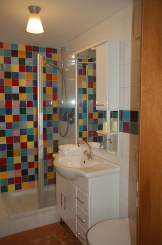 Im Dachgeschoss des ehemaligen Wohnhauses der Müllers-Leute befindet sich die Wohnung Storchennest. Echtholzparkett, das offene Dachgebälk und die individuelle Ausstattung machen den besonderen Charme dieser Wohnung aus! Das Badezimmer verfügt über Dusche, WC und Waschtisch. Im gemütlichen Wohn-/Essbereich wurde die vollaustetattete Küche mit historischen Fliesen aus der ulmer Region (um 1900) aufgewertet. Eine Holztreppe führt nach auf die offene Galerie zur Kuschelhöhle im Dachspitz. Hier sind zwei Betten für Kinder (je 200 x 90 cm) untergebracht. Im Elternschlafzimmer befindet sich ein 160 cm breites Doppelbett.