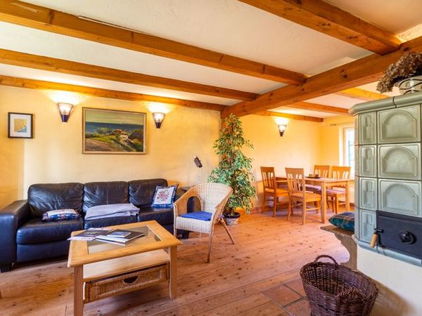 Hochwertig ausgestattetes Ferienhaus. Im Erdgeschoss separate Küche mit Esstisch, Wohnzimmer mit Kachelofen und Bad mit Badewanne. Im Obergeschoss ein Schlafzimmer mit Doppelbett, ein zweites Schlafzimmer mit einem Doppelstockbett, unten als Doppelbett (1,40 m breit) und einem Oberbett. Dusche/WC.