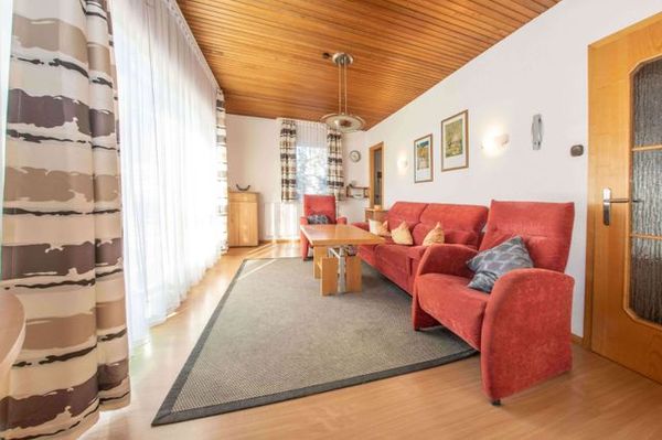 Das Wohnzimmer mit bequemer großer Couch, zwei Sesseln mit Liegefunktion lädt zum Lesen und Entspannen ein, der höhenverstellbare Tisch kann vielfältig genutzt werden.