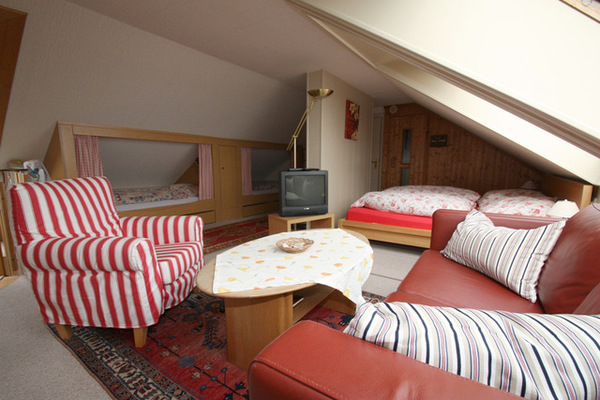 Wohnzimmer, Dachstudio und Küche jeweils mit TV