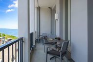 Dusche/WC, Bettwäsche, Balkon, Nichtraucher, Waschmaschine, Spülmaschine, Haartrockner, Mikrowelle, Kühlschrank, Meerblick, Backofen, Heizung, WC-Toilette., WLAN, Safe, Gefriermöglichkeit, TV - Flachbild, Panoramablick, Küche (offen), Tiere nicht erlaubt, Wohn/Schlafraum komb., Doppelbett, Schlafsofa, Smart-TV, Kaffeemaschine, Toaster, Wasserkocher