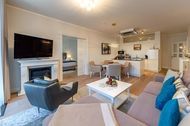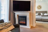 Das Meerblick-Appartement Kleine Auszeit befindet sich im zweiten Obergeschoss des FIRST Sellin, ganz bequem mit dem Aufzug zu erreichen. Auf 90 qm Wohnfläche erwarten Sie purer Luxus, ein elegantes Ambiente und ein Höchstmaß an neuester Technik. Warme Farben, das wunderschöne Eichenparkett und die modernen Möbel sorgen dafür, dass Sie sich auf Anhieb wie zu Hause fühlen. Der mit 43 qm überaus großzügige Wohn- und Essbereich ist mit einer hochwertigen, offenen Küche mit Kochinsel ausgestattet. Die schöne Essecke bietet ausreichend Platz für vier Personen. Das große Wohlfühlsofa lässt sich mit ein paar Handgriffen in ein vollwertiges 1,60 m breites Bett verwandeln. Lassen Sie sich verwöhnen von dem elektrischen Kamin mit Heizfunktion und erleben Sie unterhaltsame Abende auf dem 55 Zoll großen LOEWE-TV mit Internet-Funktion. W-LAN steht Ihnen natürlich kostenfrei zur Verfügung. Die Küche sieht nicht nur äußerst elegant aus, sondern überzeugt natürlich auch mit ihrer Ausstattung. Dazu zählen u.a. ein Induktionsherd mit Backofen, ein geräumiger Kühlschrank mit Gefriermöglichkeit, eine Mikrowelle, eine Spülmaschine sowie Kaffeemaschine, Wasserkocher und Toaster. Wenn Sie also nicht unterwegs in einem der wirklich sehr empfehlenswerten Lokale der Insel Rügen einkehren, können Sie sich hier allerbestens selbst versorgen. Der nächste Bäcker für die frischen Frühstücksbrötchen ist nur zwei Gehminuten entfernt. Im rund 22 qm großen Schlafzimmer verspricht ein 2,00 x 2,00 m großes Premium-Boxspringbett süße Träume. Dazu gibt es ein zweites Fernsehgerät. Das angrenzende Ankleidezimmer bietet jede Menge Platz und Stauraum für Ihre gesamte Urlaubsgarderobe. Von hier aus erreichen Sie das Badezimmer mit Dusche/WC, einem beleuchtetem Waschtisch sowie Handtuchheizkörper, Kosmetikspiegel und Fön. Darüber hinaus gibt es in der Wohnung auch noch ein Gäste-WC. Die nach Westen ausgerichtete und gut 14 qm große möblierte Loggia erreichen Sie vom Wohnzimmer aus oder morgens direkt nach dem Aufstehen aus Ihrem Schlafzimmer. Bis in die Abendstunden werden Sie hier von der Sonne verwöhnt. Genießen Sie dabei den herrlichen seitlichen Blick auf das weite Meer bis hinüber zu den Kreidefelsen und die Aussicht auf das bunte Treiben in der prächtigen Wilhelmstraße. Für Wellness-Freuden der besonderen Art stehen Ihnen im FIRST Sellin der Sky-Pool (12,0 x 4,30 m), zwei Saunen sowie eine Sonnenterrasse auf der Dachetage kostenfrei zur Verfügung. In der Sommersaison können Sie darüber hinaus gern auch den solarbeheizten Außenpool im Innenhof des Gebäudekomplexes nutzen. Gut zu wissen: