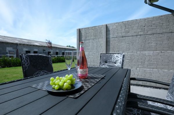 Im Wohnbereich steht Ihnen eine große Couch-Ecke und ein gemütlicher Sessel zur Verfügung. Gesellschaftsspiele, ein Flachbild-TV mit Smart-TV, DVD-Player und Hi-Fi-System sorgen für das passende Unterhaltungsprogramm. Über die große Doppelflügeltür haben Sie direkten Zugang zu Ihrer privaten Süd-Terrasse mit bequemen Sitzmöglichkeiten und Sonnenschirm. Darüber hinaus steht Ihnen die gemeinschaftlich genutzte Gartenterrasse mit Grillmöglichkeit und weiteren Sitzgelegenheiten zur freien Verfügung.