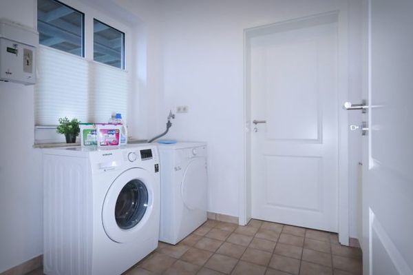 Zusätzlich zum Balkon mit Sitzmöbeln und Sonnenschirm steht Ihnen die große Rasenfläche und die gemeinschaftlich genutzte Gartenterrasse mit Grillmöglichkeit und gemütlicher Möblierung zur freien Verfügung. Vom geräumigen Eingangsbereich des Hauses haben Sie Zugang zum Wasch- und Trockenraum. Auf den fest reservierten PKW-Stellplätzen können Sie Ihren PKW direkt neben dem Haus parken. Ab Frühjahr 2024 bieten wir unseren Gästen zudem eine abschließbare Fahrradgarage inkl. E-Bike-Lademöglichkeit an.