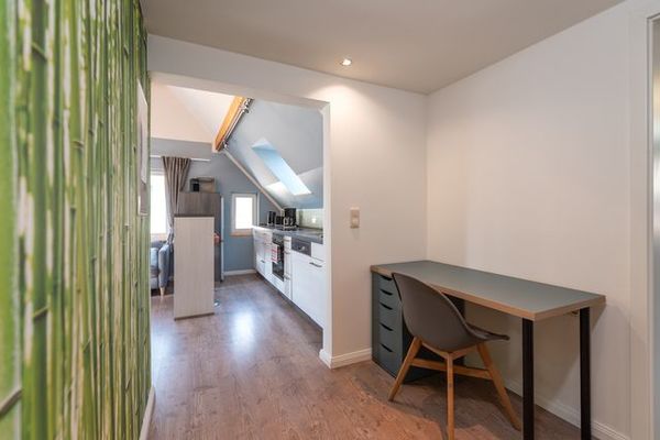Ein besonderes Feature der Wohnung ist die Schreibtischecke im Flur, die es Gästen ermöglicht, bei Bedarf zu arbeiten oder einfach nur in Ruhe im Internet zu surfen. Für längere Aufenthalte oder für diejenigen, die auch im Urlaub nicht auf frische Kleidung verzichten möchten, steht eine Waschmaschine zur Verfügung.