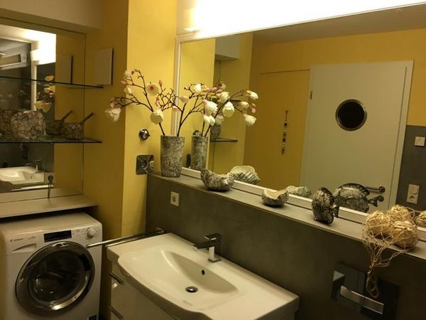 - Badewanne mit Duschabtrennung/WC und Waschmaschine