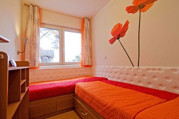 Die Wohnung verfügt über zwei Schlafzimmer. Bei geöffneten Fenstern genießen sie eine magische Geräuschkulisse vom Rauschen der Ostseewellen in der Dämmerung und fröhlichem Vogelgezwitscher vom direkt benachbarten Dünnenwald.
