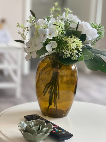 Die frisch renovierte Ferienwohnung "Vampi" verfügt über eine modern eingerichtete Küche, ein Schlafzimmer, ein Wohnzimmer mit Flachbildfernseher und ein Bad. In dem ruhig gelegenen Schlafzimmer verbringen bis zu zwei Personen eine ausgeruhte Nacht in einem großen Doppelbett. Für eine dritte Person bieten wir als Aufbettung eine Schlafcouch in dem offenen Wohnbereich. In der Küche befindet sich alles, was Sie für ein leckeres Frühstück, Mittagessen oder Barbecue am Abend benötigen. Zur Ausstattung gehören eine Geschirrspülmaschine, ein Toaster, eine Kaffeemaschine, ein Backofen, ein 4-Platten-Herd und eine großzügige Ausstattung mit Ess- und Kochgeschirr. Der offene Wohn- und Essbereich lädt zum Verweilen ein. Außerdem gibt es einen direkten Zugang zu einer eigenen Holzterrasse mit kleinem Garten. Hier lassen Sie den Alltag hinter sich und die Seele baumeln. Gönnen Sie sich eine Tasse Tee oder Kaffee auf unseren modernen Gartenmöbeln im Outdoorbereich. Ihr Fahrzeug können Sie direkt an der Ferienwohnung parken - es steht sicher auf unserem Gelände. Wir freuen uns nun, Sie auf dem Falkenhof in Meisdorf begrüßen zu dürfen und wünschen Ihnen eine gute Zeit.