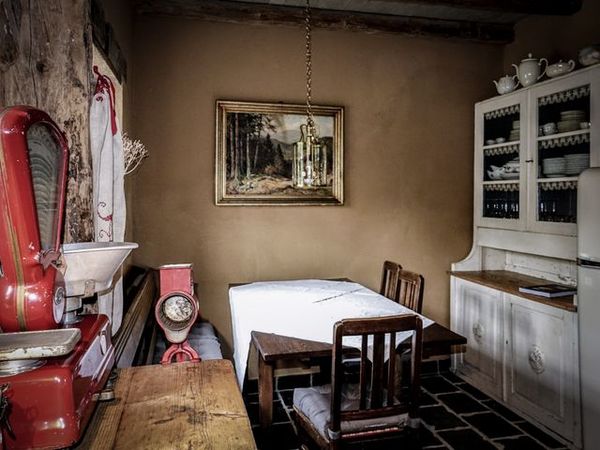 Das Ferienhaus Gänsetrappe mit 3 Schlafzimmern und 2 Bädern zeichnet sich durch die historische Raumaufteilung in mehrere kleine gemütliche Stuben aus. Die Küche verfügt über einen Holzofen, Spülmaschine und Essbereich für 6 Personen. Die Bäder sind schiefergefliest und mit ebenerdiger Dusche ausgestattet. In den Schlafzimmern stehen jeweils Doppelbetten, an zwei der Zimmer grenzt ein Ankleidezimmer an.