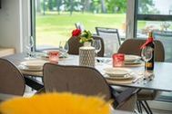 Diese im Jahr 2024 fertiggestellte Ferienwohnung verfügt über eine Wohnfläche von 112 m² und befindet sich im Haus 8, das etwa 400 Meter von den anderen Oase am Haff-Häusern entfernt auf einem separaten Grundstück in gleicher Südlage liegt.
